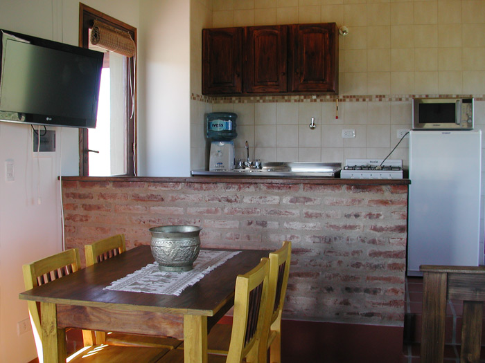 La casa consta con habitación en planta baja, baño con bañera, habitación en planta alta balconeada, kitchinette, salón comedor y de estar, deck de madera, parrilla individual y garaje cubierto. Aire acondicionado split frío-calor, ventiladores de techo, salamandra a leña, paneles eléctricos de calor, televisión LCD, DirecTV, WI-FI, vajilla, cocina c/ horno, microondas, heladera, dispenser de agua, luz de emergencia, servicio de mucama, servicio de blanquería, desayuno. La casa posee desniveles. No se alojan mascotas.
